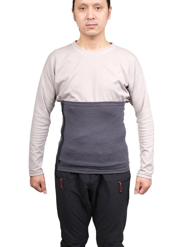 The Quick Haramaki merino is a technical belly wrap that keeps you warm from the chest down to the waist, yet is quick and easy to put on and take off with the side zips.