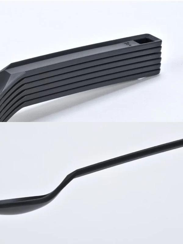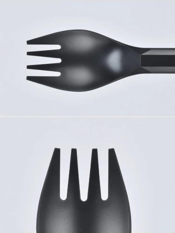 Most outdoor resin cutlery is designed to be straight between the handle and the head, but this product is angled to create a shape that makes it easier to approach the plate.