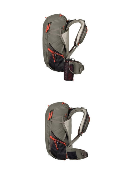 It has a 30 L capacity with a U-shaped zipper opening for quick access to the gear you need and a sturdy lashing system for expansion. The shoulder straps and waistbelt are also fitted with pockets for storing small items and a fold-down bottle pocket. Hydration can be easily accessed in the mountains.