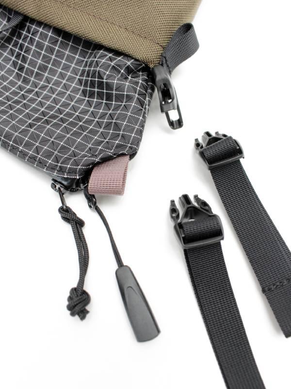 In addition, a top gusset with Dyneema zip comes from the inside.