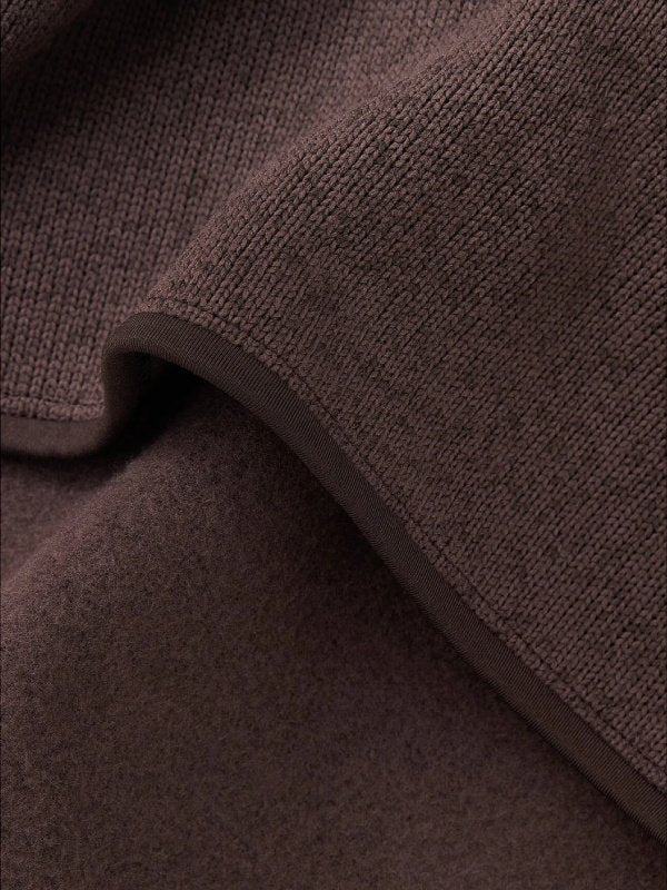 100%リサイクルポリエステル製の素材は、柔らかで保温性が高く、ウールのような風合いのヘザーニットを使用しています。