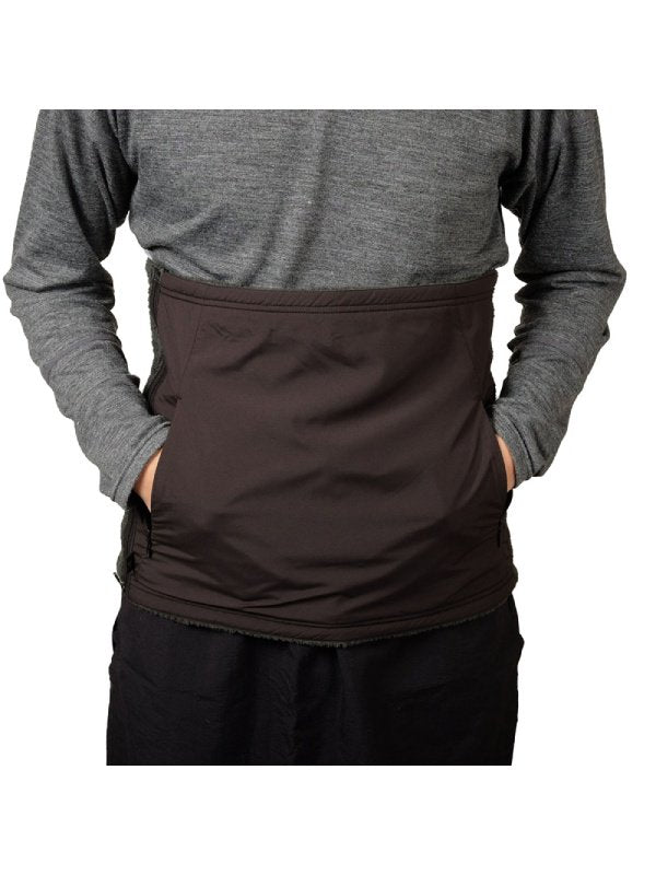 クイックハラマキは胸の下から腰までをしっかり温めながらも、脇のジッパーで素早く簡単に着脱できるテクニカルな腹巻きです。