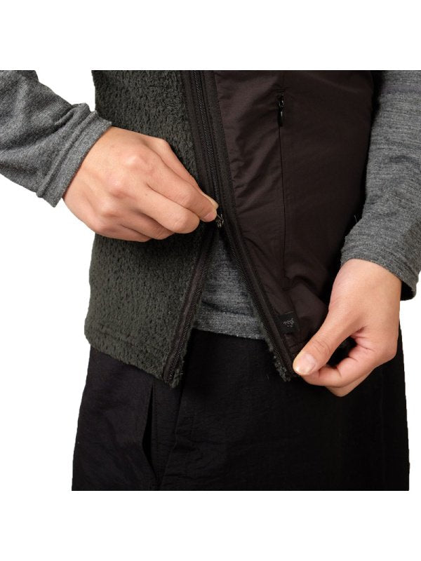 手を温めたり携帯カイロを入れたりするのに便利なポケットを備え、脇のジッパー部分のヒートロスを防ぐためにジッパーの裏側までしっかりカバーするなど細かな気配りも忘れません。