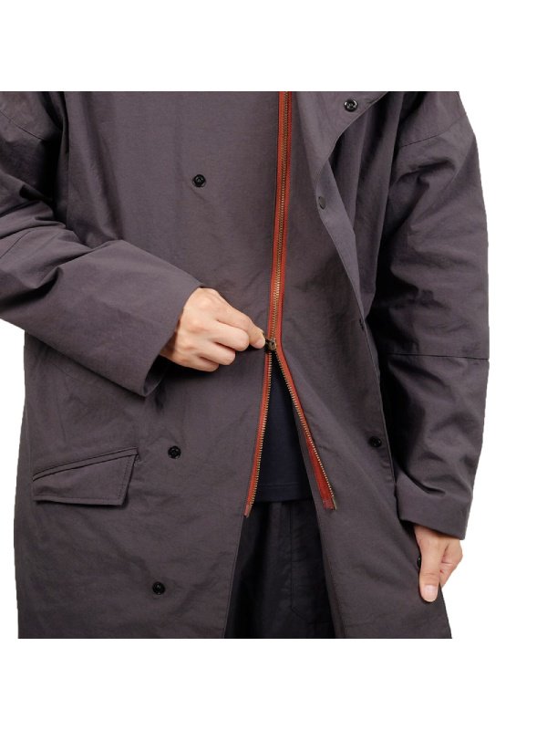富士を眺めたり、写真を撮ったり、冬枯れの尾根をのんびりシノギングするのに丁度いいアウターとしてデザインしたアキノヒは、和製マウンテンパーカーとでも言いましょうか、そのデザインと色合いから「和」の雰囲気が漂うヴィンテージ加工ナイロンのコートです。