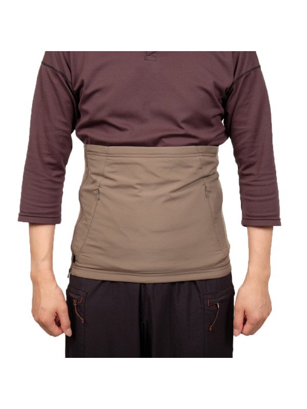クイックハラマキは、超軽量で保温性と通気性、そしてほどほどの防風性を備えたシノギング用のテクニカルな腹巻きです。