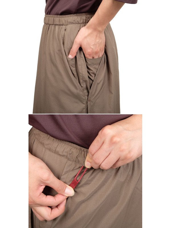 サラサラと肌触りが良く、ずば抜けた通気性を誇るこのズボンは、前後のフラップで生地が二重になっていても暑苦しさを感じないので、湿度の高い真夏のシノギングを快適に楽しむことができます。