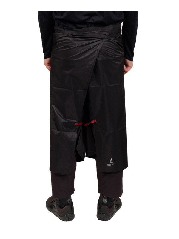 ・膝のテープを後ろで止めることで簡易レインパンツになる