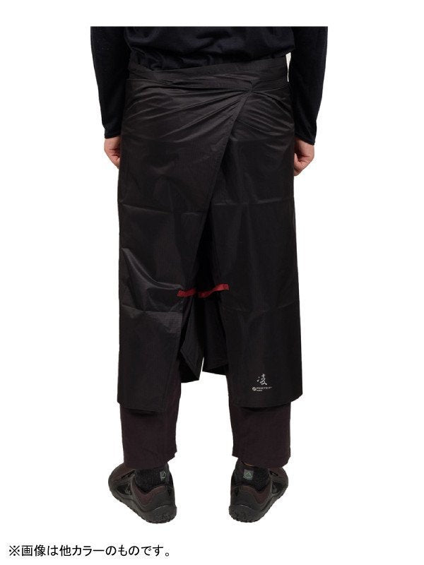 ・膝のテープを後ろで止めることで簡易レインパンツになる