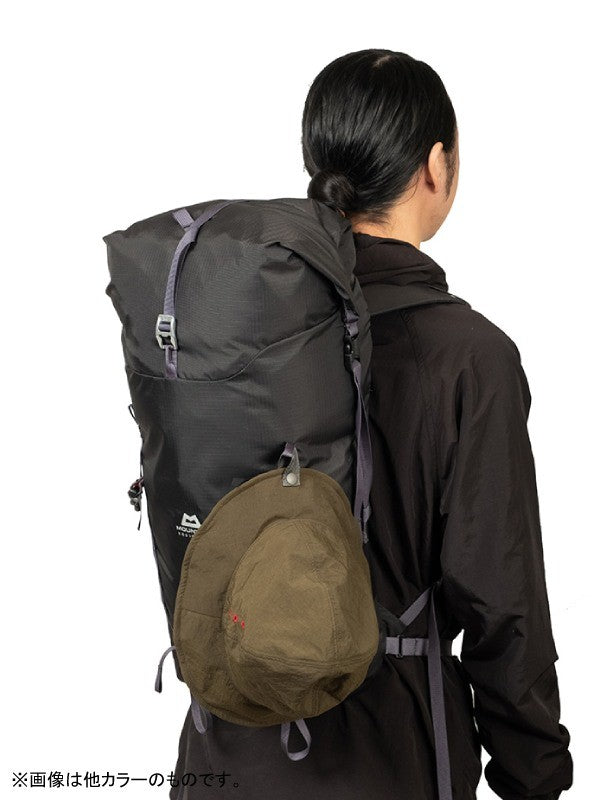 ツバの後ろのループでバックパックなどに吊り下げておけば収納による型崩れを防止できます。