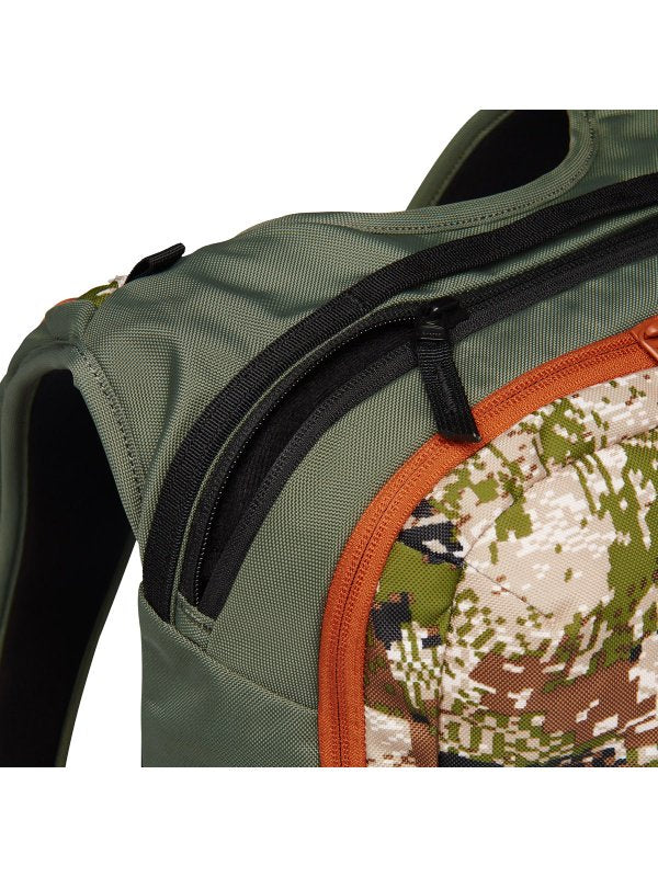 ショルダーベルト左の大型インサレーションシポケットにはハイドレーションチューブ、ソフトフラスコ、小型無線機などを収納できます。