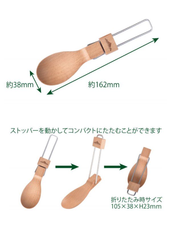 ステンレスと木製品の融合商品で、木のストッパーをステンレス部分でスライドさせることで折り畳みができるようになっています。