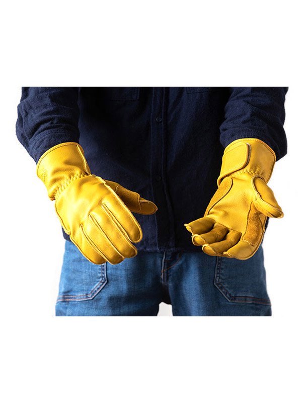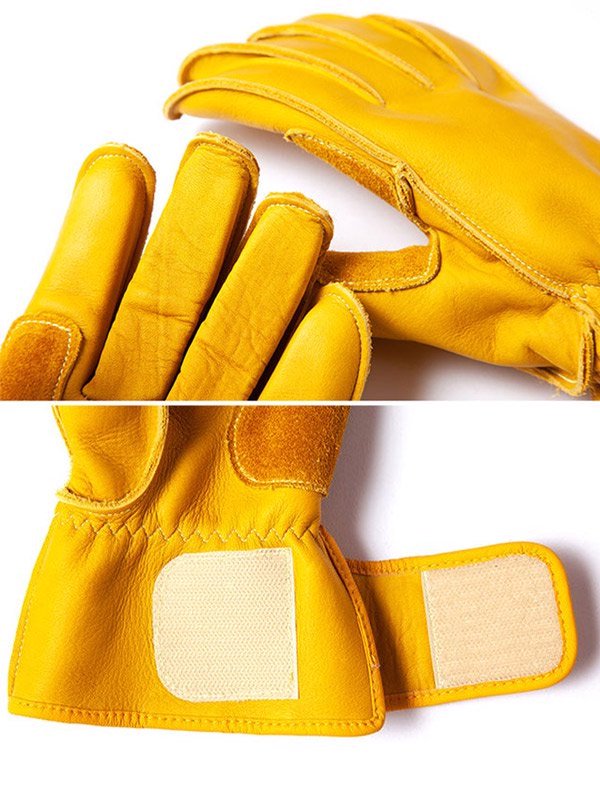 スロットルを握る部分に補強皮アテを使用し、手の形状に合わせた立体裁断を採用しています。