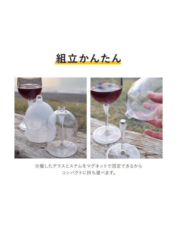 グラスとステムが取り外せて、グラス内にステムを収納できるコンパクト設計。