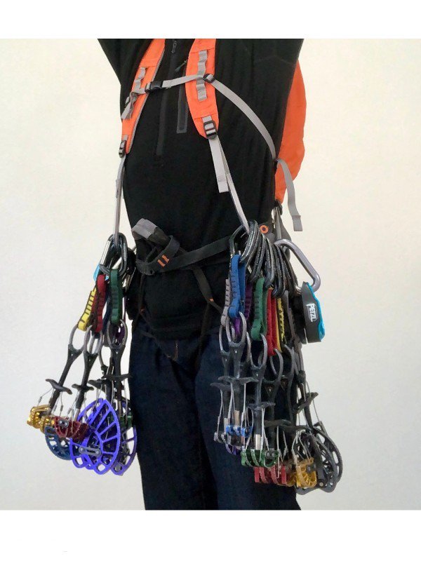 マルチピッチクライミングに必要な用具を効率、バランスよく収納するギヤラック。