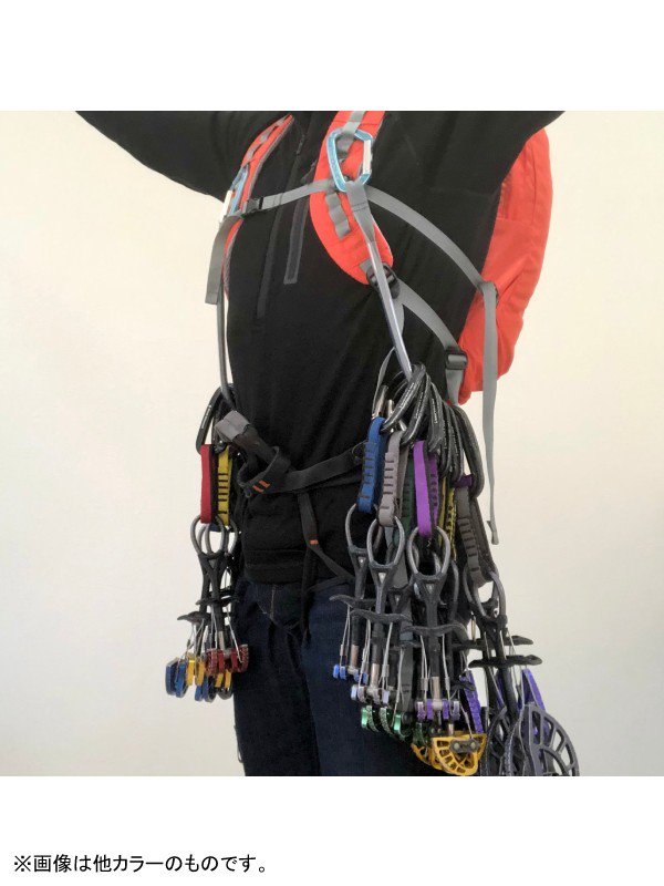 ギヤラックはショルダーハーネスにあるデイジーループにカラビナで連結し任意の位置に装着します。