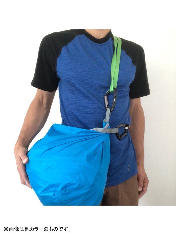 クライミング後には、60cmスリングとフリーのカラビナ2枚で肩掛けのロープバッグになります。