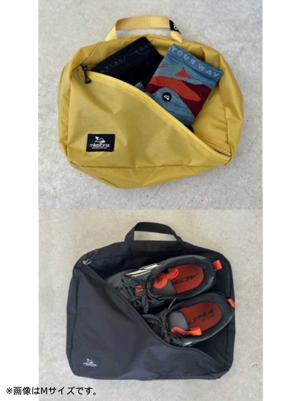 そしてダウンやアウターのような嵩張ったモノ、又はシューズやリカバリーサンダルなどを容易に収納出来る「Lサイズ(15L)」の2サイズ展開。