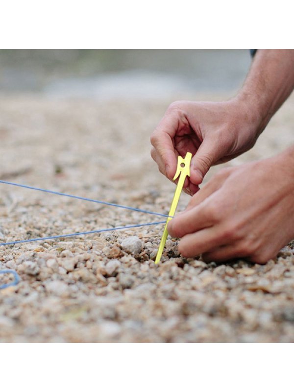 打ち込みやすいテーバードデザインでガイラインを結んだり、テンショナーを使用せずに長さ調節ができる3ポイントロッキングシステムを採用しています。