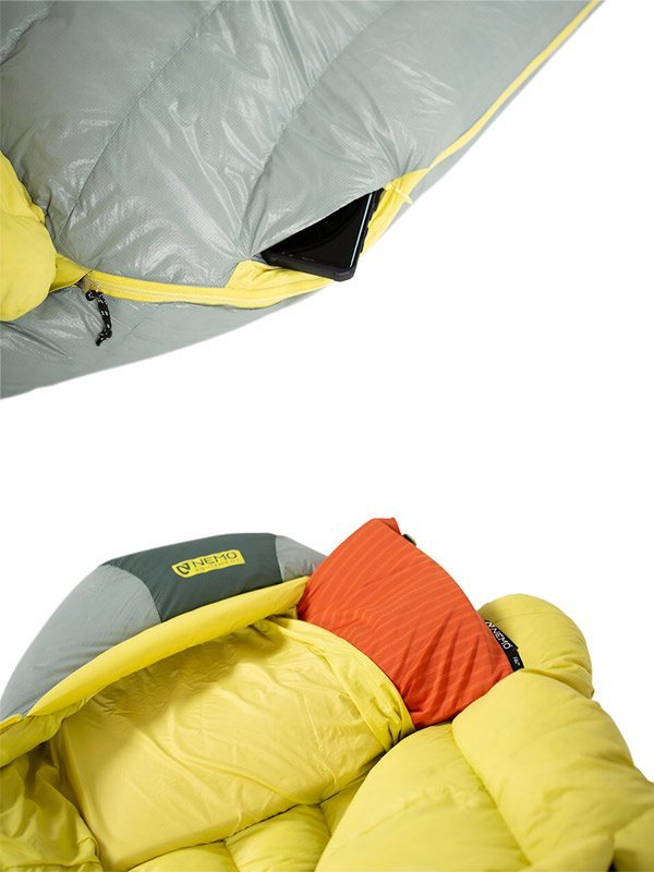 リフは800FPの撥水加工済みダウンと最先端の軽量素材、無駄を削ぎ落としたデザインを組み合わせることでスプーンシェイプのシュラフの中で最も軽量かつコンパクトな収納サイズを実現しています。