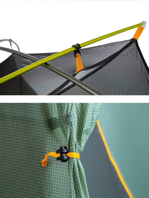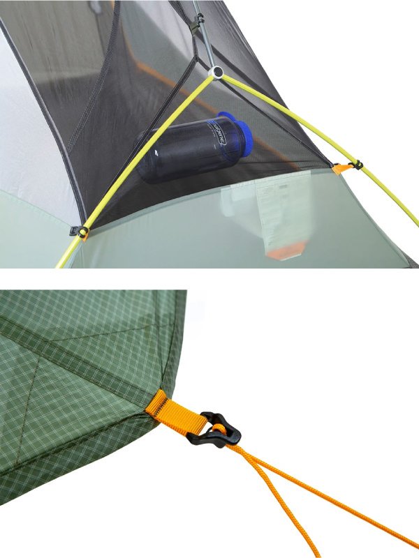 ステルスキャンピングに最適な反射材不使用かつ目立たないカラーやヘッドランプをテント内の照明に変えるナイトライトポケット、片手でドアの操作ができるゲートキーパー、ギアの整理に役立つデイジーチェーン、ギアロフト、ギアポケットなど考え抜かれたディテールが多数搭載されています。