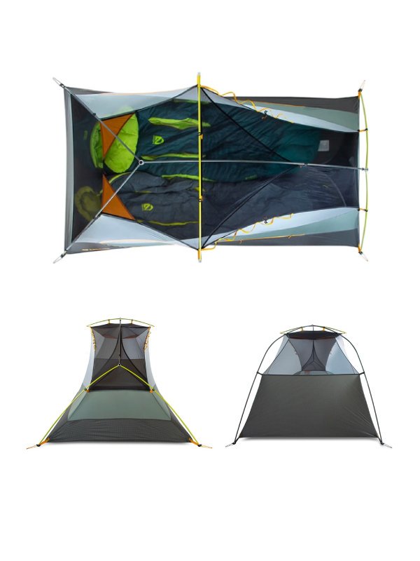 居住スペースを犠牲にせず軽量化するためにテーパード形状のデザインをフロア形状を採用、インナーテントのフロアを高く立ち上げたデザインでプライバシーと防水性を強化しました。