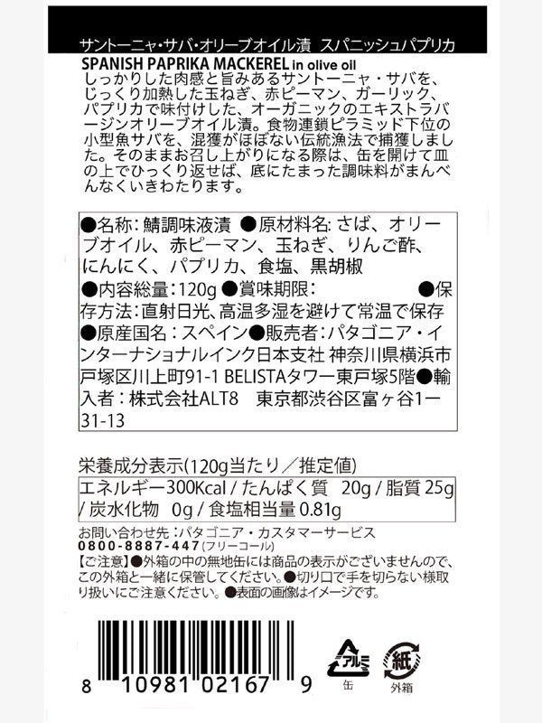 パタゴニア サントーニャ・サバ・オリーブオイル漬 スパニッシュパプリカ