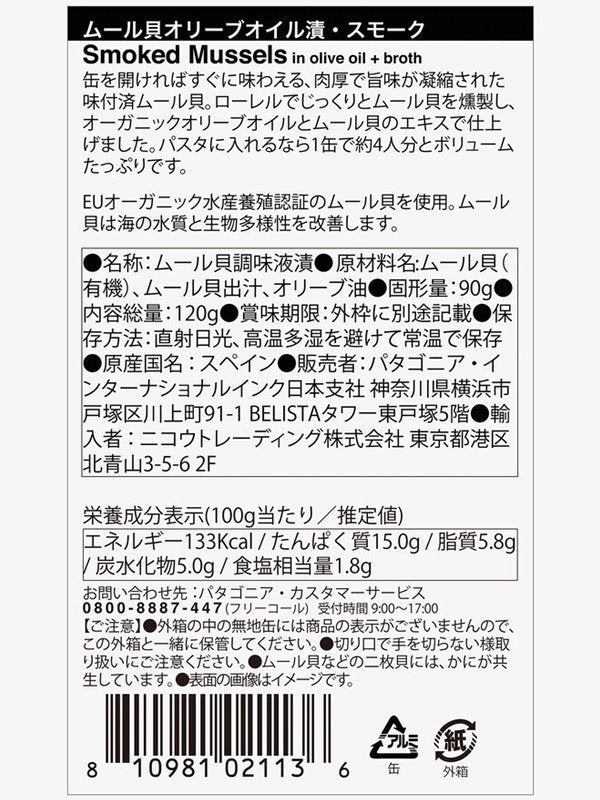 パタゴニア ムール貝・オリーブオイル漬 スモーク