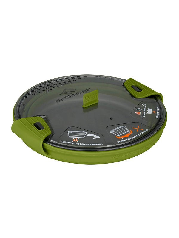 蓋には湯切り穴を備え、収納時にはハンドルでしっかりと固定できます。