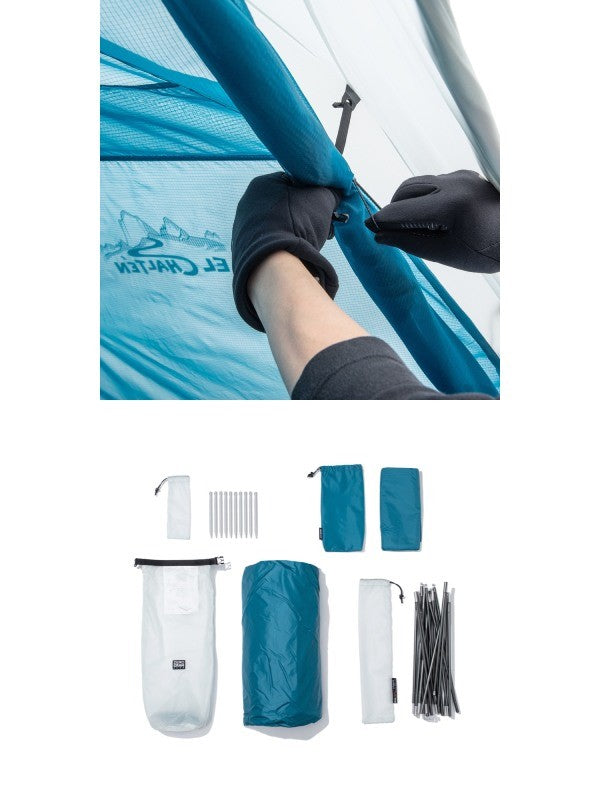 ■構成:フライ、インナー、DACポール、ペグ10、ガイライン4、フットプリント、スタッフサック