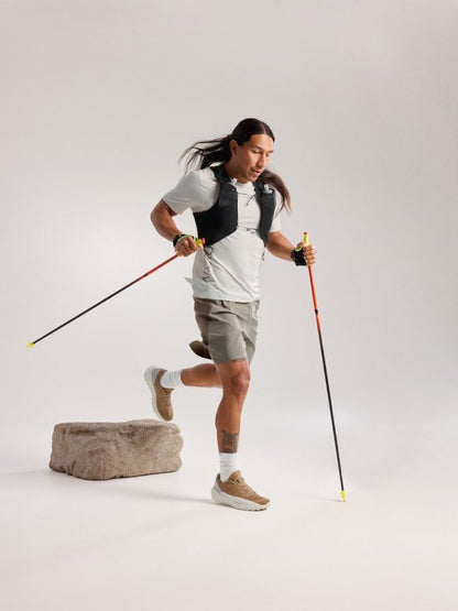 究極の山岳ランニング用シャツ、ノーバン ダウンワードは、どこまでも走り続ける人のための一枚です。前面にソフトで高性能なPhasic FL素材、背中側に超軽量のデルタメッシュを使用して通気性を高めたハイブリッド構造を採用。重要な場所にオーバーロックのシームとラミネート加工を施すことで肌擦れを最小限に抑え、ハイドレーションベストの下にも心地よくフィットします。パターンを工夫することで、動きやすく仕上げました。そして、夜間まで長距離の山中を走り続けるようなときには、大型の反射ロゴが視認性を高めてくれます。