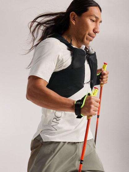 大型の反射グラフィックが映える、卓越した機能性を誇る山岳ランニング用トップス。
