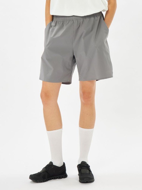 クラシカルな雰囲気のシルエット。ほどよくリラックスしたサイズ感にアップデートしています。両サイドにはスリットを入れ、洗練された印象に。接着仕様によりステッチを少なくし、ミニマルでクリーンな印象に仕上げています。タウンユースから軽いランやトレーニングなどのスポーツまで、暮らしの中のさまざまなシーンで活用できるアイテムです。