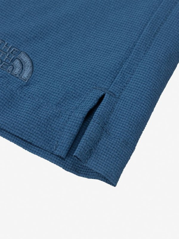 リサイクルポリエステルの生地は速乾性があり、適度なシャリ感を持ちつつしなやかな着心地です。独特のメッシュ構造を採用することで高い通気性と軽さを実現。薄手ながらも透け感を抑え、単体でも着用が可能です。UVガード(UPF30-50+、紫外線カット率90%以上)機能付き。