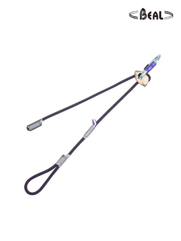 ダイニーマ製のラッペルループを備えたアジャスタブルランヤード。これ1本でセルフビレイとバックアップ付き懸垂下降を行えます。