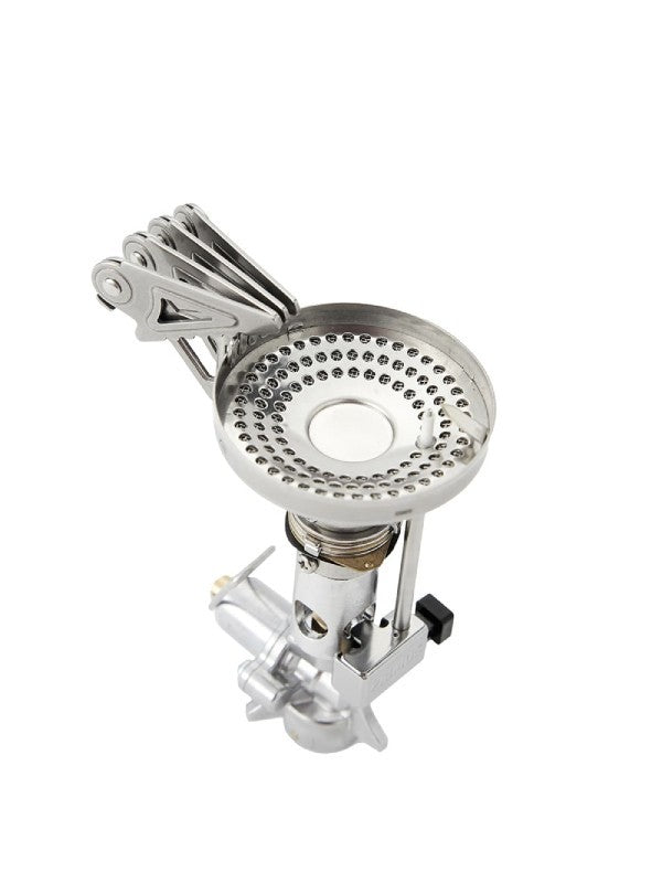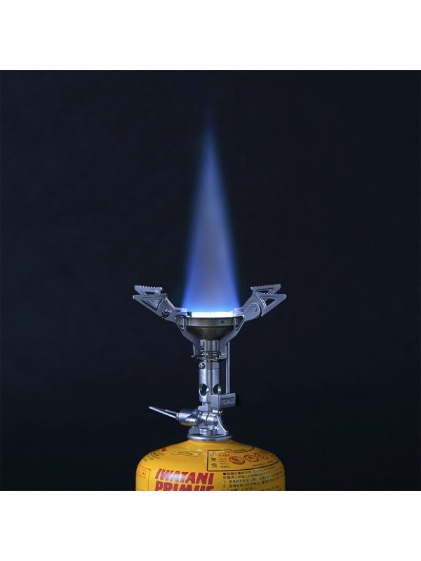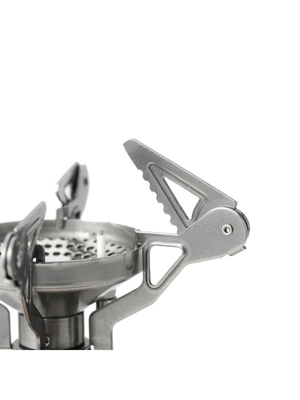 厳しい環境下でもセットが簡単な4 本ゴトクを装備。耐風性の高い炎を実現するため、バーナーの炎口サイズとその配置を研究。さらに、鍋底に効果的に炎をあてるゴトクとの距離など、燃焼性能を向上させるための設計を施しました。バルブにはレギュレーターを内蔵。ガスカートリッジの内部圧力が高い時の過度なガスの噴出を抑え、気化熱による出力低下を抑制する機能をもっています。